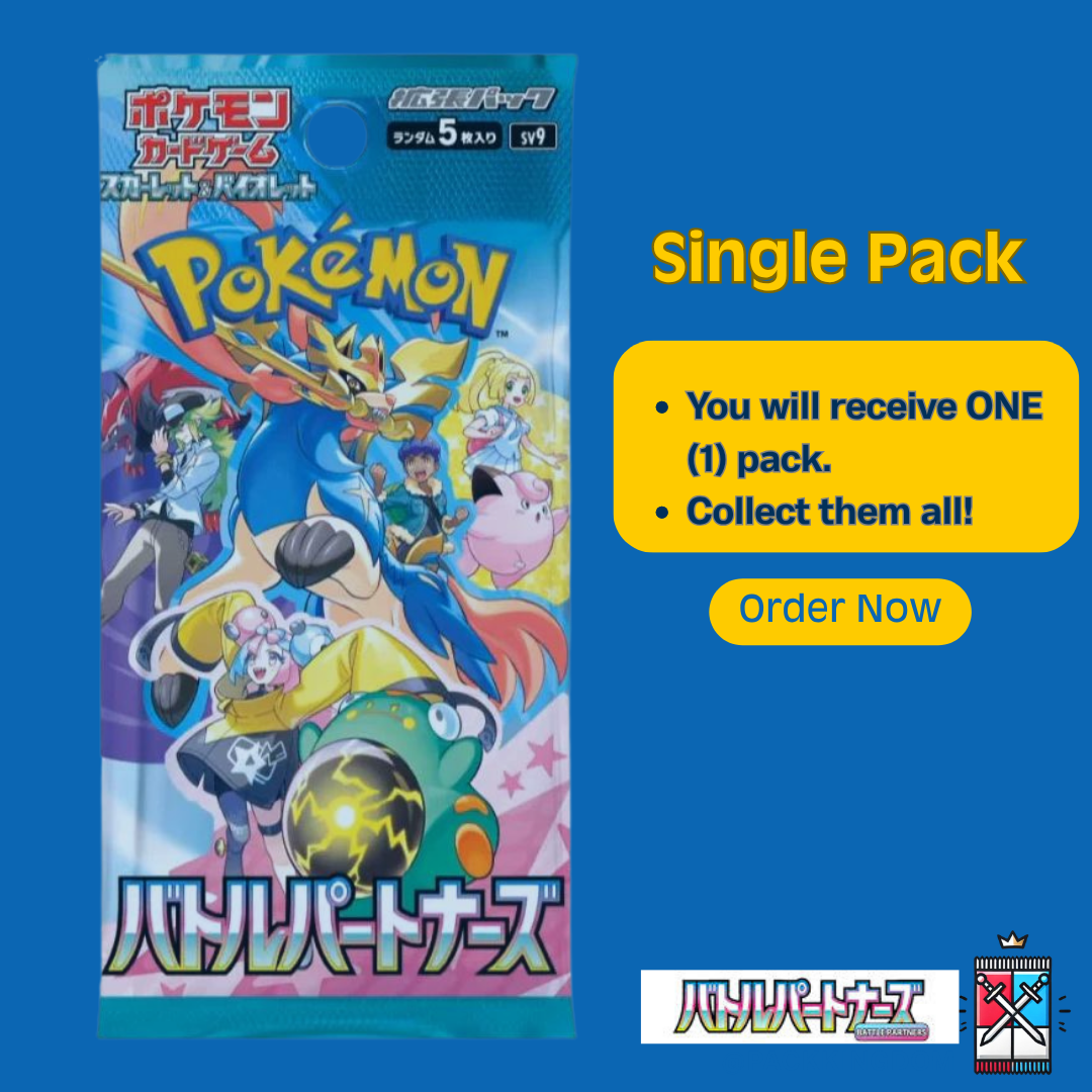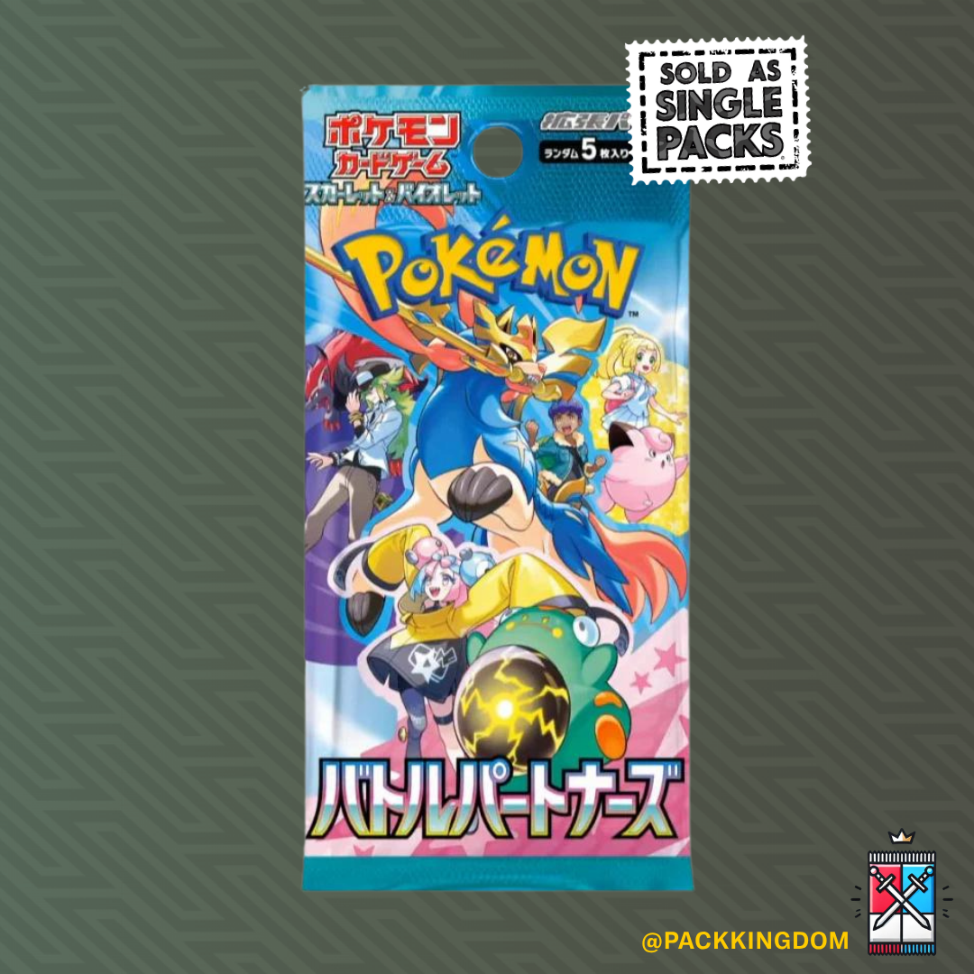 This listing is for one (1) single Pokémon TCG: Scarlet & Violet—Battle Partners Japanese Booster Pack. Each pack contains 5 authentic Japanese Pokémon cards, offering a thrilling chance to discover powerful Trainer’s Pokémon and stunning Secret Rares to expand your collection.