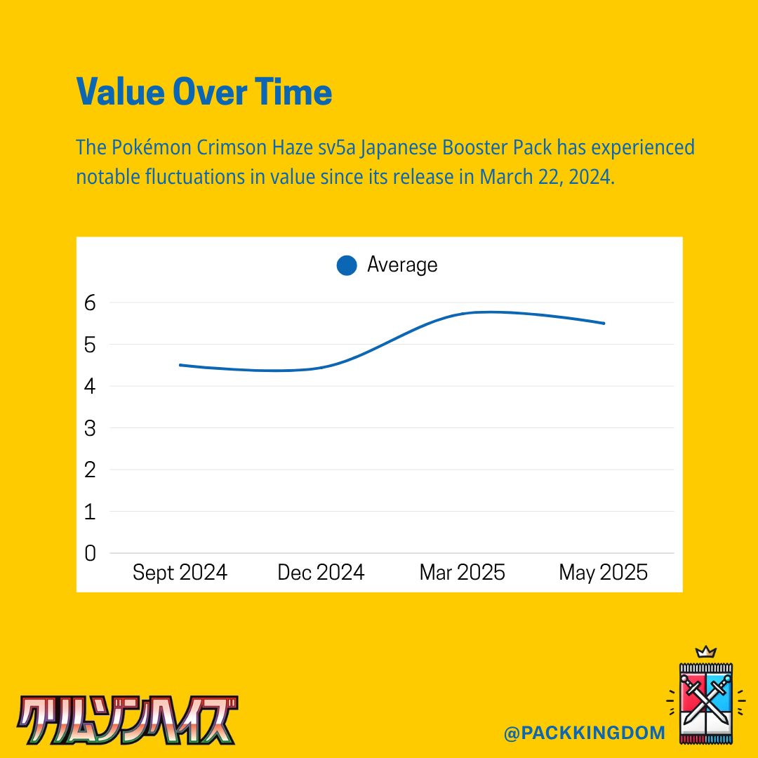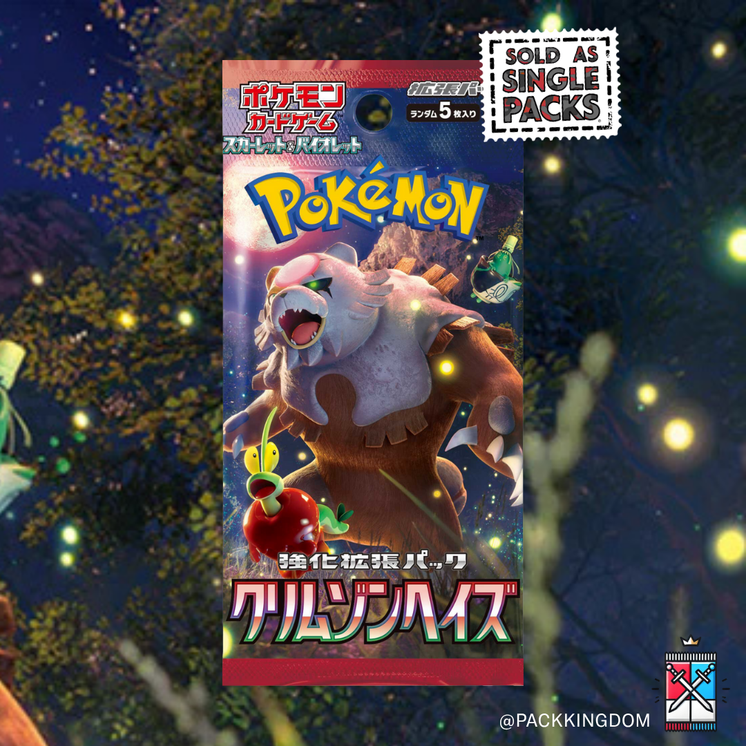 This listing is for one (1) single Pokémon Crimson Haze (SV5a) Japanese Booster Pack. Each pack contains 5 authentic Japanese Pokémon cards, offering a thrilling chance to discover rare shiny Pokémon and Secret Rares to expand your collection.