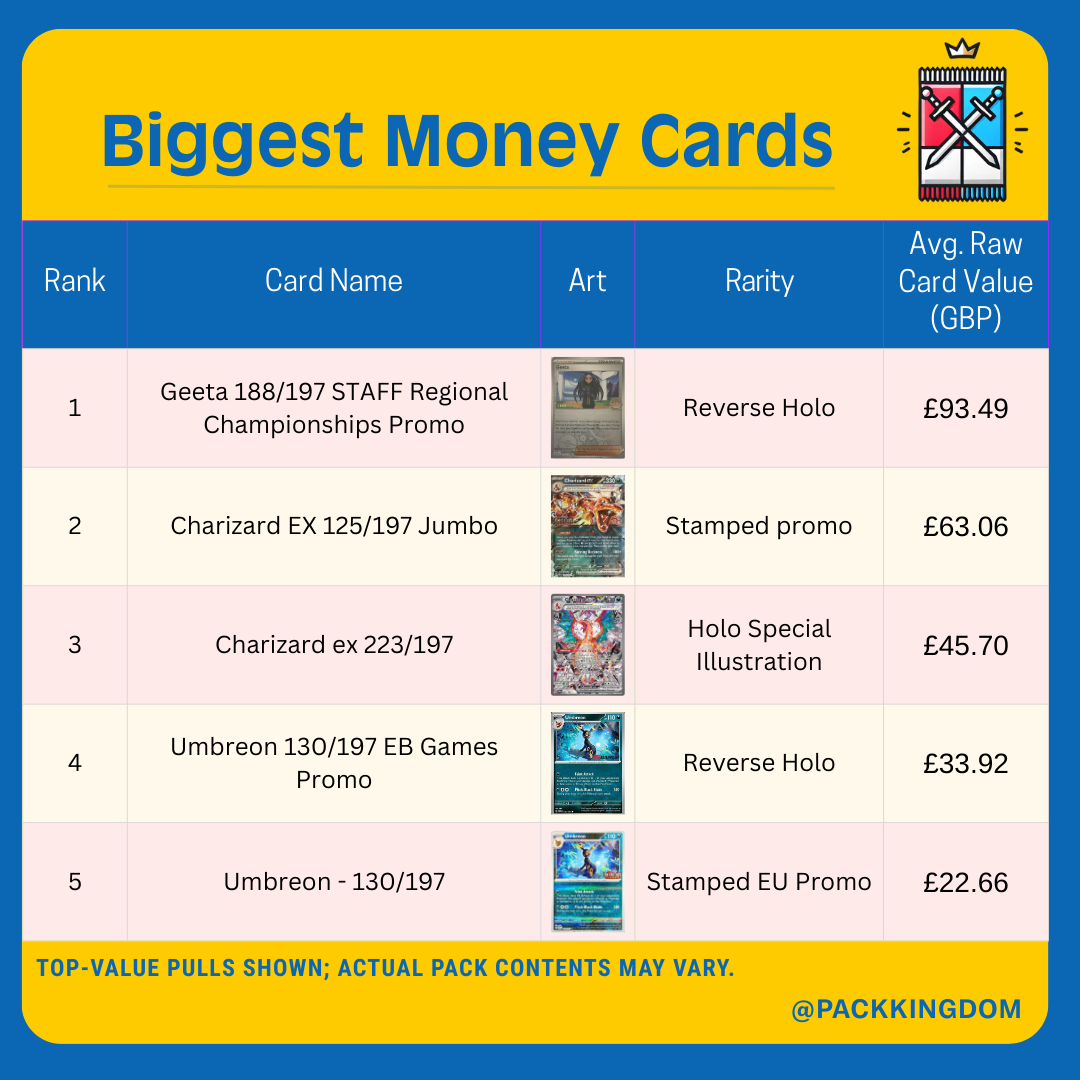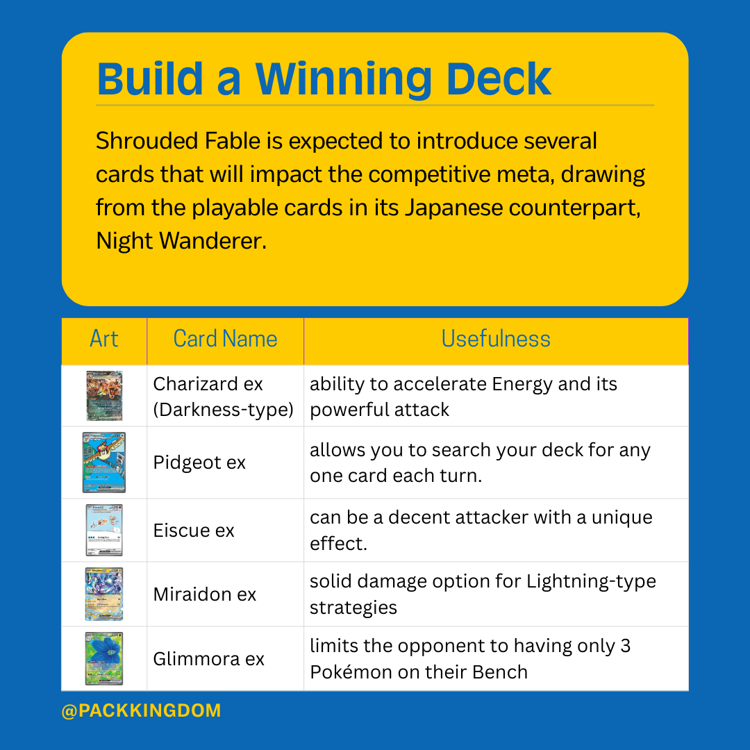 - New Pokémon ex: Look for powerful Pokémon ex cards like Tyranitar ex, Eiscue ex, and Vespiquen ex.