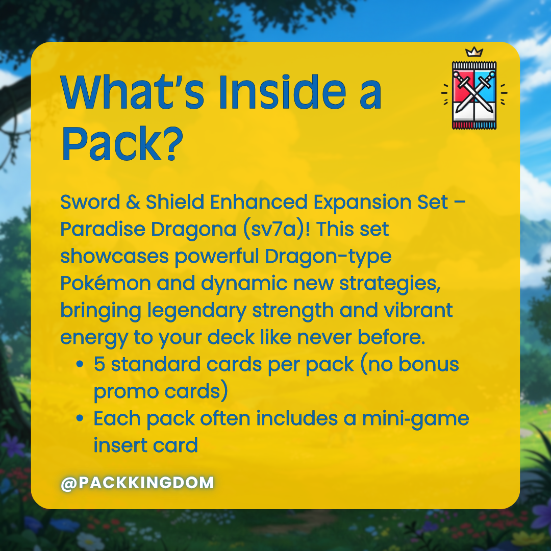 Don’t miss out on this unique opportunity! Order your Pokémon TCG: Paradise Dragona (sv7a) Korean Booster Pack today and claim victory!