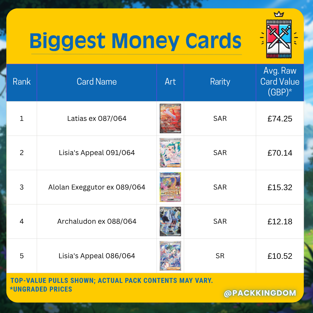 - High Pull Rates: The odds of pulling Holo Rare, Pokémon ex, and Secret Rare cards are much higher in this type of pack.