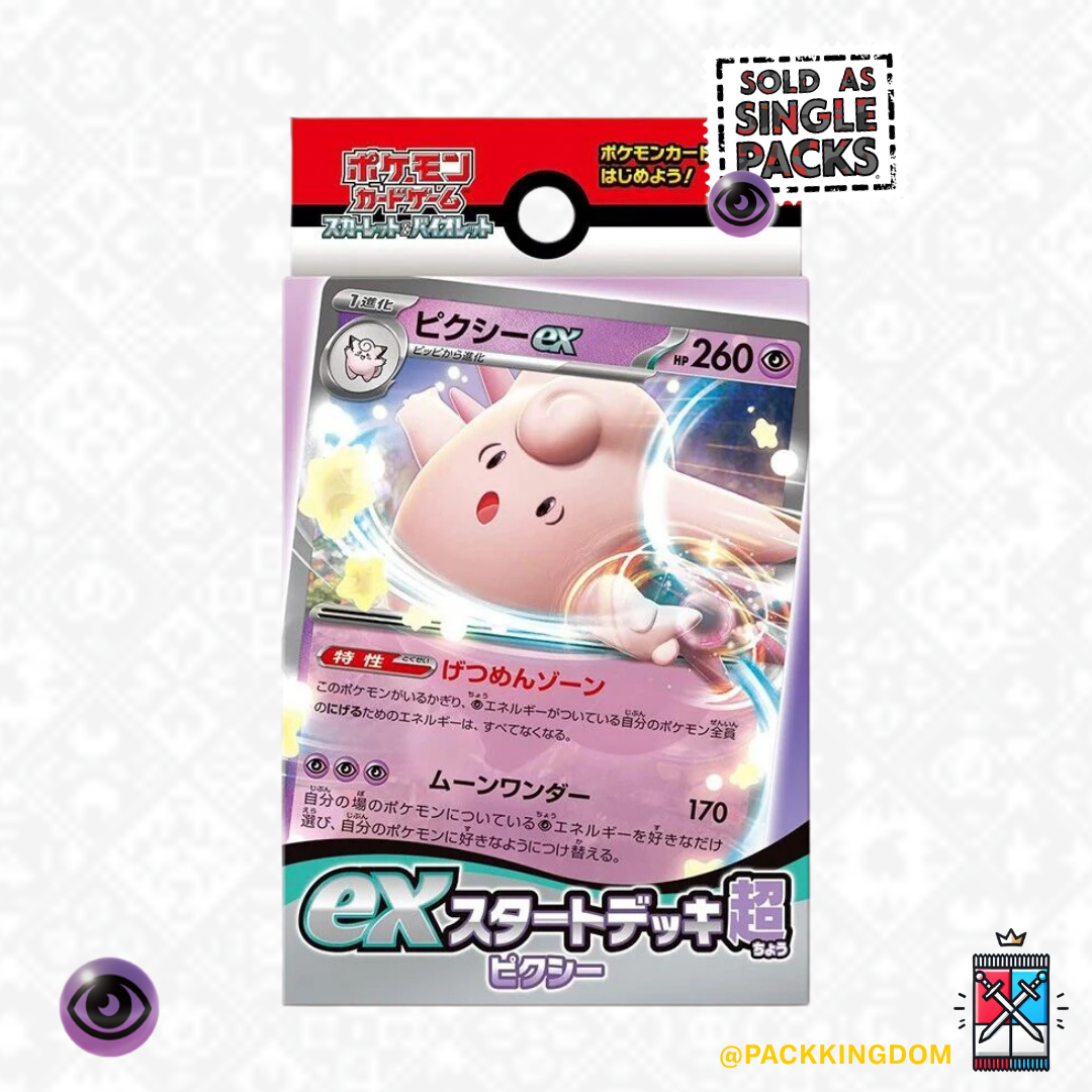 This listing is for one (1) single Pokémon TCG: Scarlet & Violet ex Starter Deck – Psychic Type Clefable (Japanese Edition). This ready-to-play 60-card deck features the powerful Clefable ex and is perfect for new players to dive into Psychic-type strategies in the Pokémon TCG.
