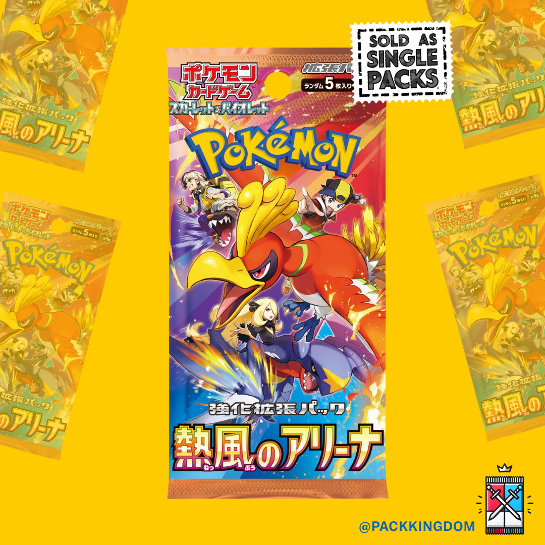Enter the ultimate test of skill with a single Pokémon TCG: Scarlet & Violet—Heat Wave Arena Booster Pack (Japanese). This exclusive set is dedicated to the thrill of high-stakes competition. Each sealed pack is your chance to discover powerful Pokémon ex, incredible new Trainer cards, and highly coveted Special Art Rares. It’s the perfect set for players looking for a competitive edge and collectors seeking the most dazzling cards.