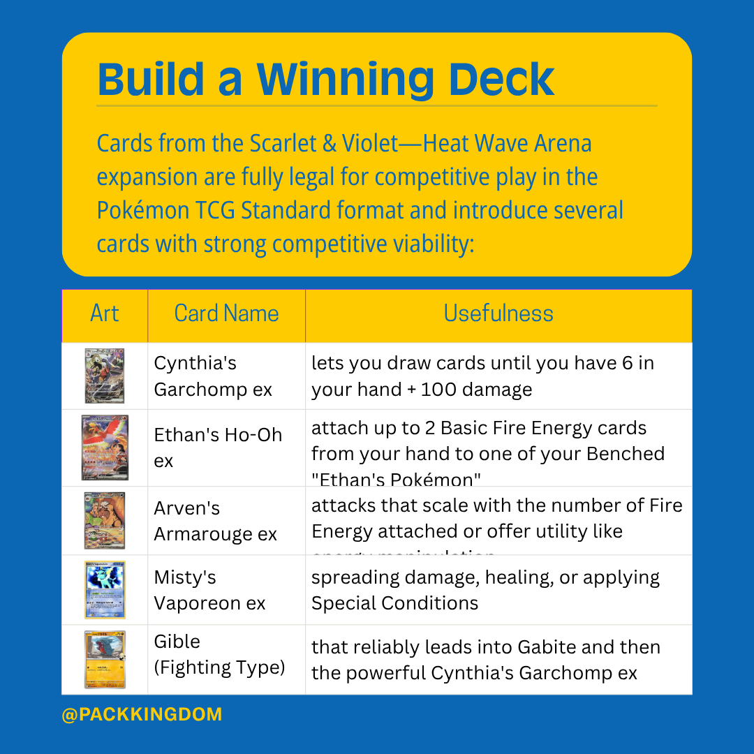 - High-Impact Cards: Look for powerful Pokémon ex that can dominate the arena and turn the tide of battle.